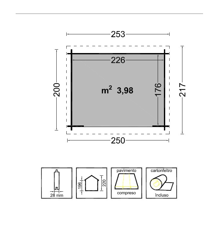 Dimensioni interne cm 226x176
